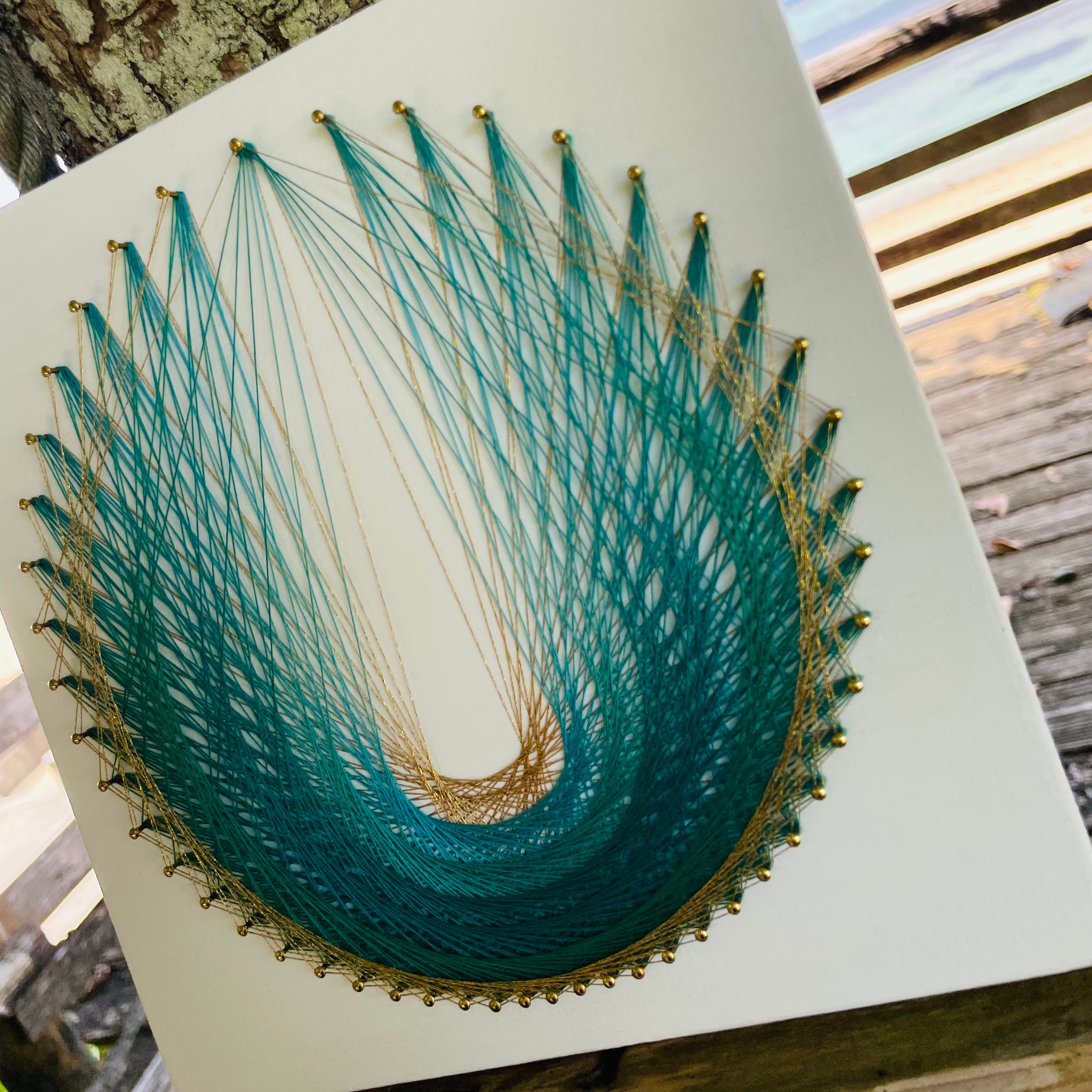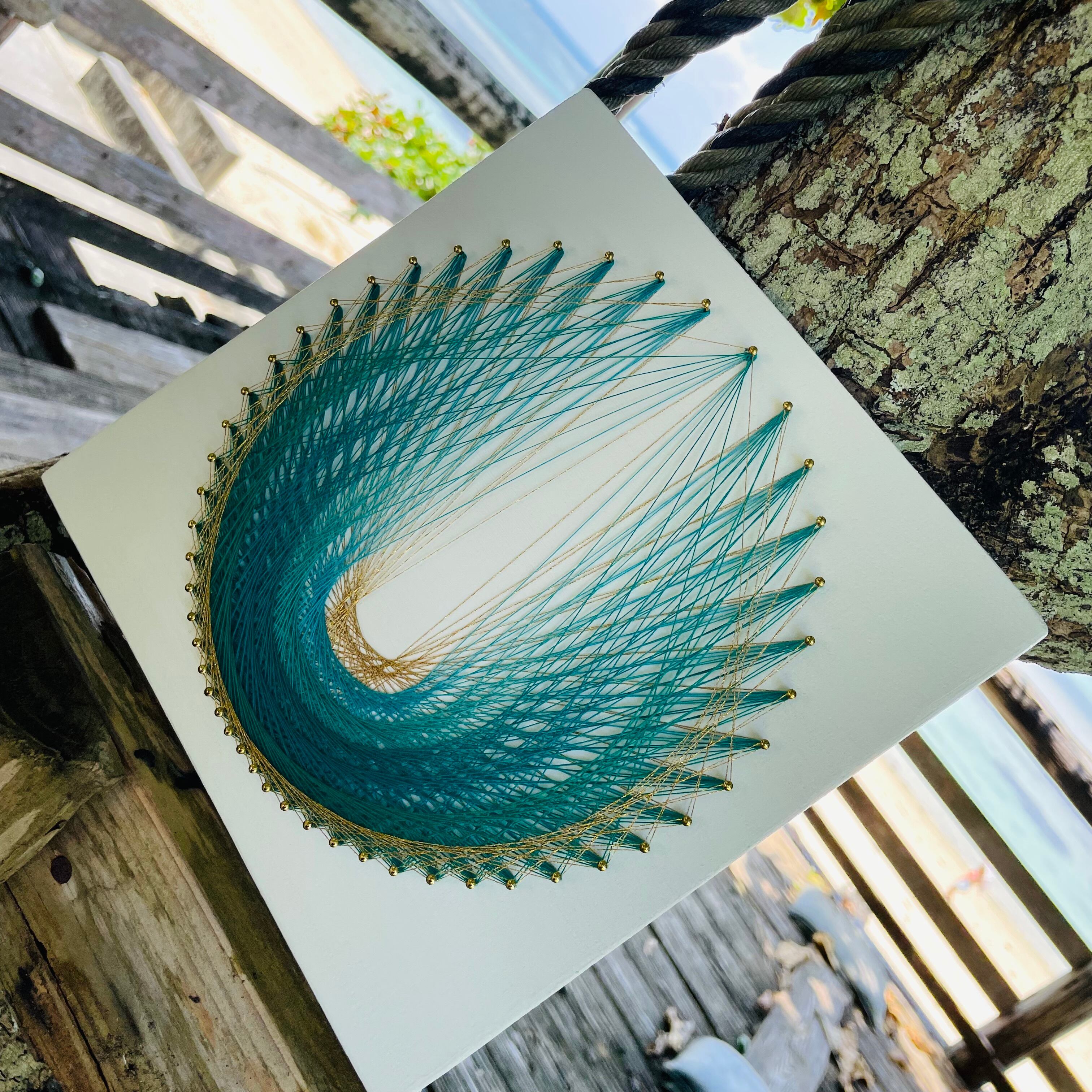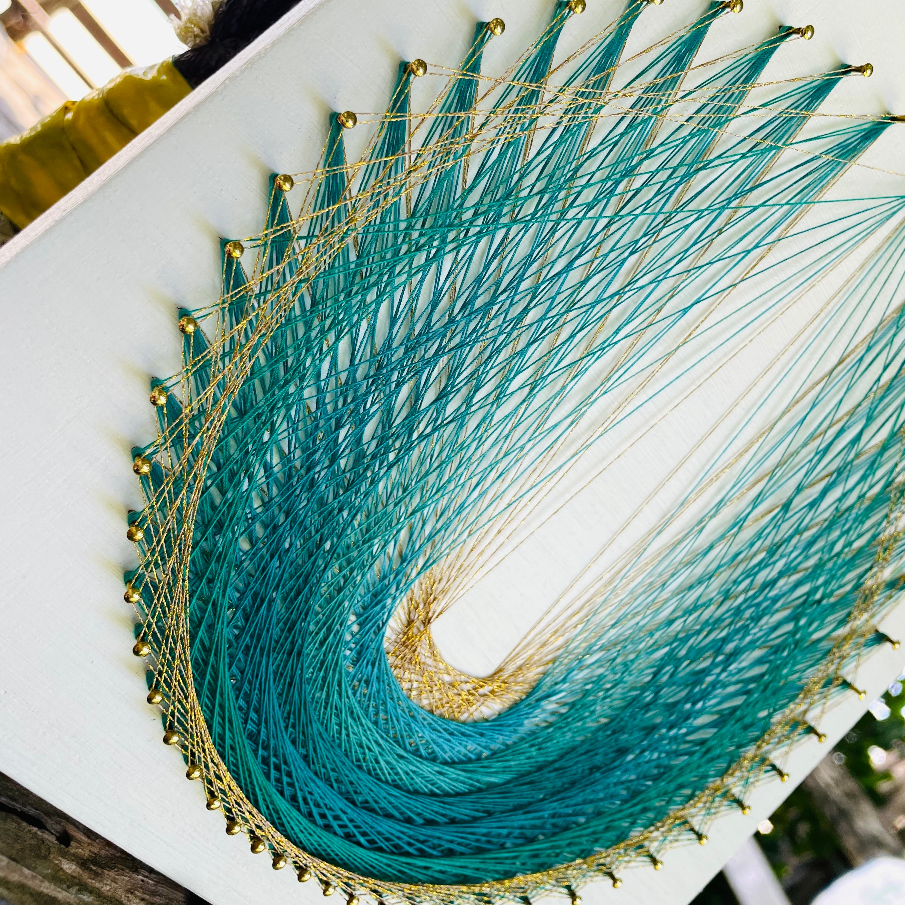 こちらの作品は、南国の沖縄で間もなく美しく咲き誇る花を、木製の板に糸と釘を使って表現された、今までにない新しいアート作品となっています。