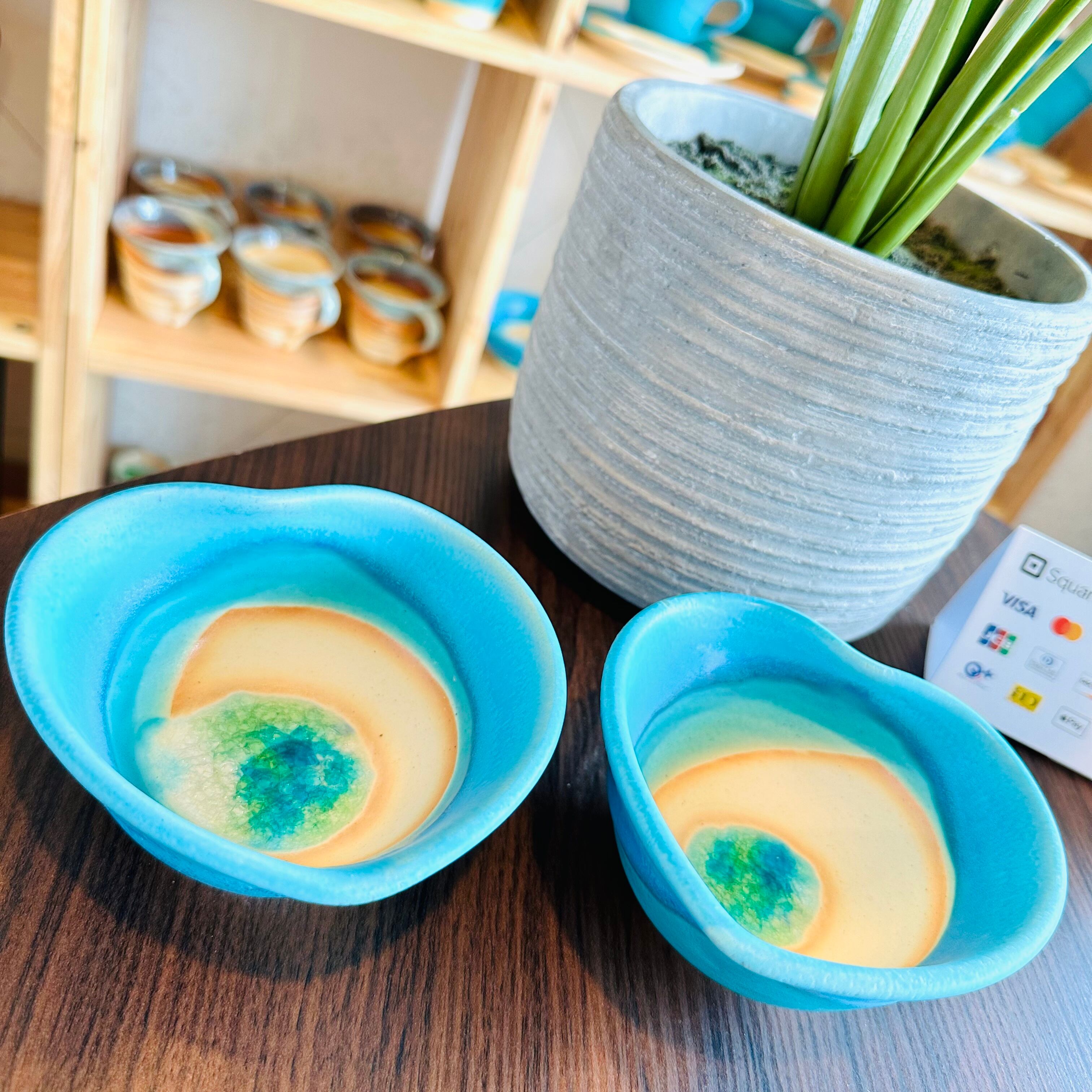 うるま陶器 青のハート器 ver.3