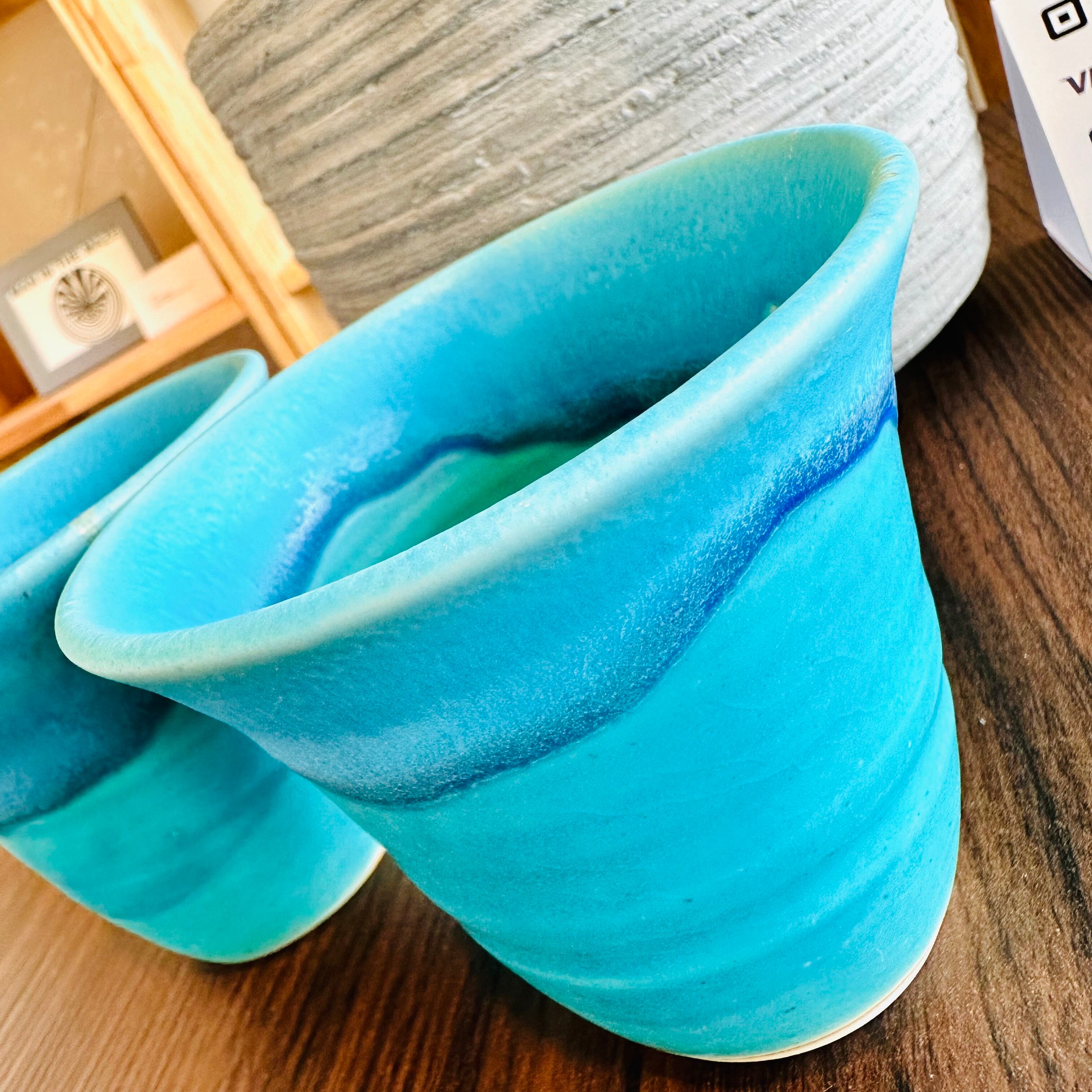 沖縄県うるま市にて、沖縄の海をテーマにしたデザインで沖縄伝統工芸品の「やちむん」に、琉球ガラスや爽快なブルーを取り入れ注目を集めている陶芸家・佐陶慎児氏が創り出す「うるま陶器」、別名「うるまブルー」の登場です。