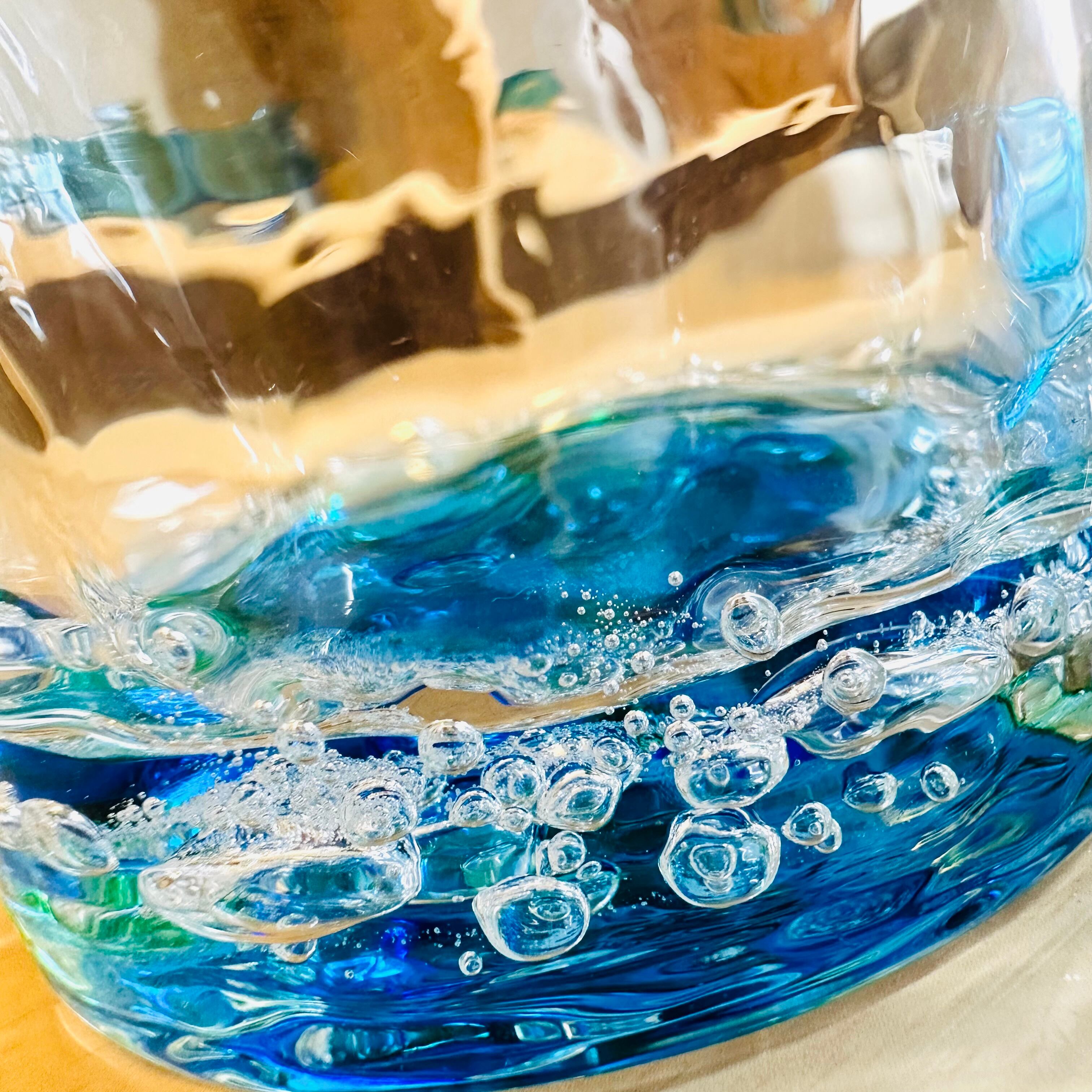 こちらの作品の魅力は、やはり太陽の光を浴びキラキラと輝くを沖縄の海を連想させる美しいガラスのグラデーションではないでしょうか。