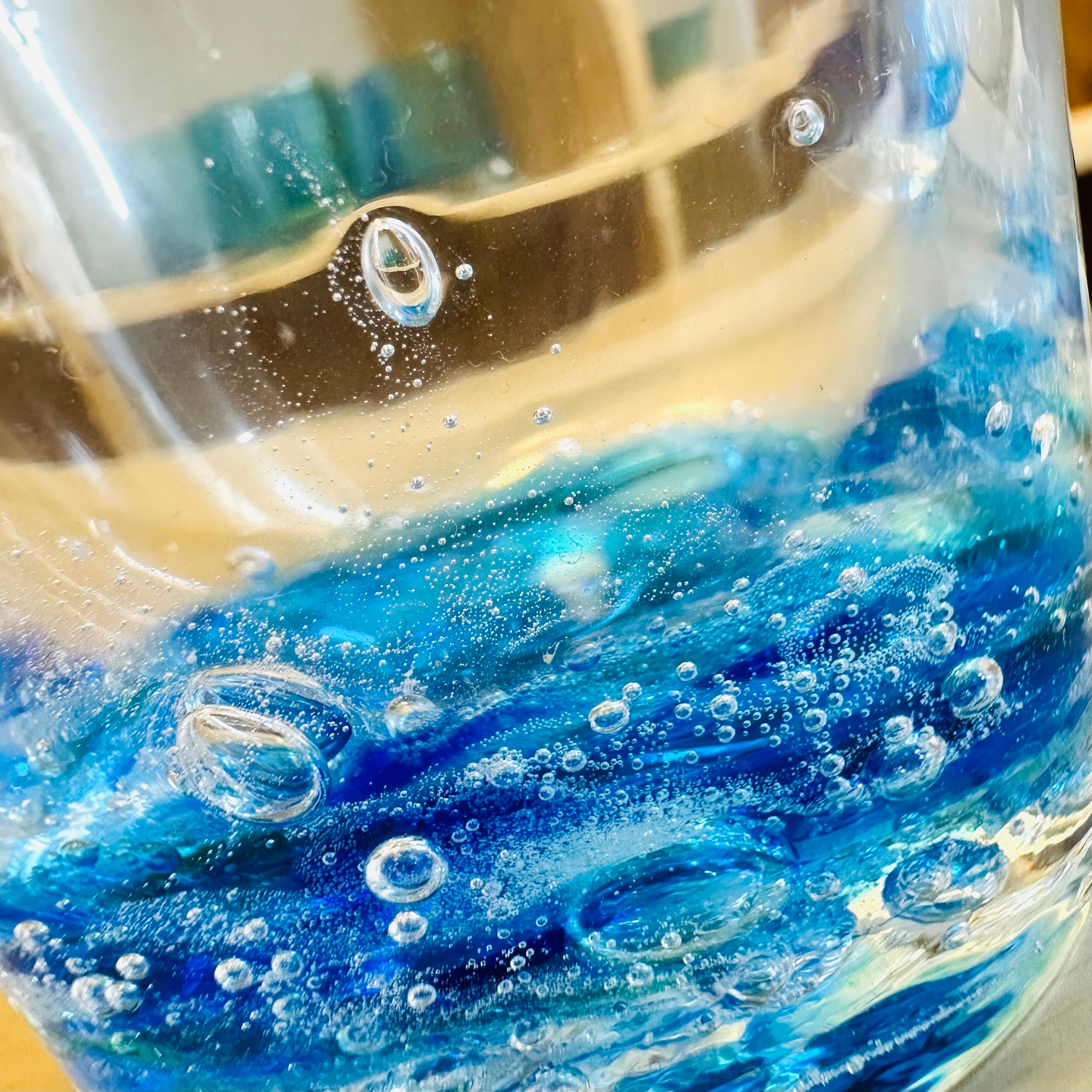 またグラスの中に見える気泡は、まるで沖縄の海の中をのぞいているかの様な気分にもさせてくれ、日々の生活に癒しを与えてくれます。