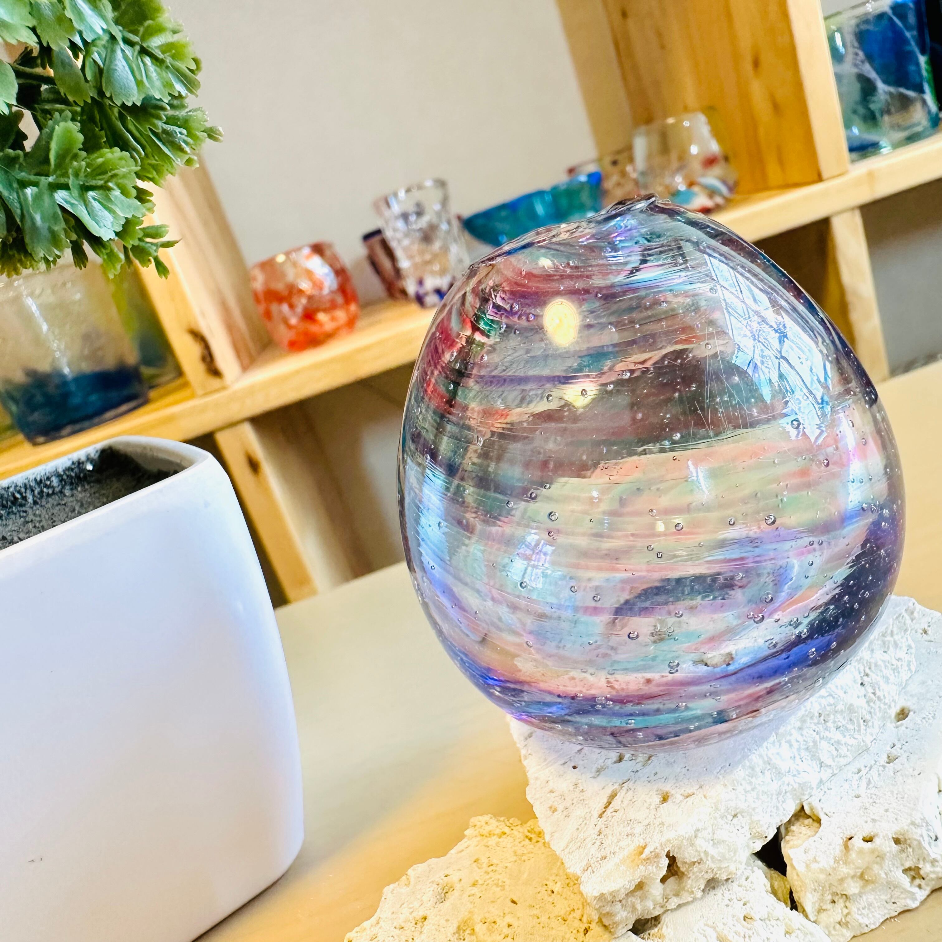 今まで沖縄にて多くの琉球ガラスを見てきたB-Blueのスタッフも、こちらの作品を目にした瞬間に一目惚れをしてしまい取り扱いを決めたほどです。